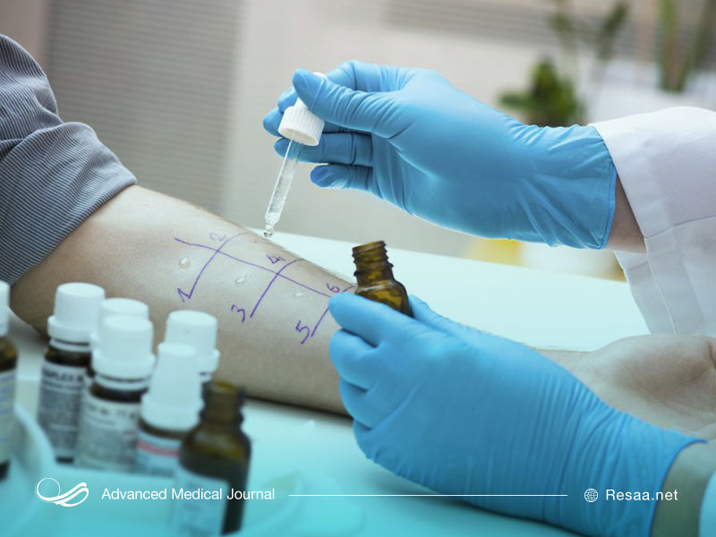 تست حساسیت پوستی: در طول آزمایش حساسیت پوستی ، پزشک کمر یا بازوی شما را با لولههای ریزی که حاوی آلرژنها (مواد حساسیت زا) معمول است خراش میدهد یا قطره ای از عصاره تولید شده از آن آلرژن در آزمایشگاه را بر روی پوست خراش داده شده میریزد. در صورت وجود حساسیت به هر یک از مواد آزمایش شده، پوست آن محل بعد از حدود 15 تا 20 دقیقه دچار خارش، قرمزی یا تورم میشود. میزان واکنش پوستی با میزان حساسیت به آلرژن به طور مستقیم و قوی ارتباط دارد.